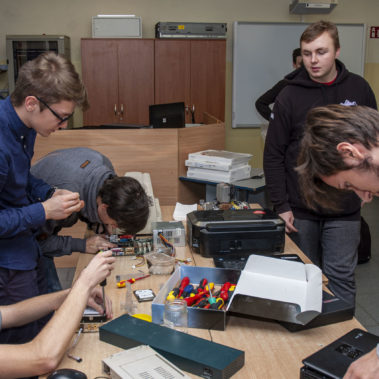 Po wkroczeniu do stworzonej przez elektroników chatki półolbrzyma Hagrida, młodzi czarodzieje zostali poinformowani o zasadach panujących w „Zakazanym Lesie”. Następnie wykorzystując przedziwne różdżki, otrzymane od brodatego strażnika, rozwiązywali zagadki ukryte w ciemnym i pełnym tajemnic gaju. Pomyślne wykonanie budzących napięcie zadań pozwalało im uniknąć ataku strasznego pająka Aragoga. Niemniej elektryzujących wrażeń nastolatkowie doznali podczas spotkania z elektrykami, którzy w swojej pracowni stworzyli niepowtarzalny klimat za pomocą świetlnych improwizacji. Uczniowie szkół podstawowych w locie chwytali nie tylko ciekawostki dotyczące inteligentnych domów, ale także słodkie niespodzianki i kolorowe balony. Od zaklęć i eksperymentów zakręcić się mogło w głowie również podczas wizyty u energetyków prezentujących młodszym kolegom tajemne działanie modelu układów elektronicznych oraz maszyny napędzanej ciepłem. Wystrzałową atmosferę uzyskano tam doprowadzając do startu rakietę za pomocą mieszanki z sody oczyszczonej i octu oraz uruchamiając latarkę bez źródła zasilania. Od emocji zahuczało także podczas zabawy z tekturowymi kostkami rozegranej z udziałem śnieżnej sowy Hedwigi. Z prawdziwym sztukmistrzostwem żądni niecodziennych przeżyć odkrywcy spotkali się w komnacie informatyków zachęcających ich do eksplorowania zagadkowej skrzynki oraz rozbiórki sprzętów IT kryjących w sobie części Potterowej układanki. Dodatkową atrakcją było rysowanie postaci z powieści J. K. Rowling przy użyciu tabletów graficznych oraz przeprowadzanie przez tor przeszkód robota Lego za pomocą smartfona. Swój urok na gości rzucili także automatycy prezentując sterowane falownikami silniki oraz zapraszając do umysłowej rozrywki przy panelu z przyciskami działającymi dzięki sterownikom Mitsubishi. Chwili wytchnienia od technologicznych nowinek można było zaznać udając się na wystawę zabytkowych pojazdów przygotowaną przez ich właściciela i restauratora Michała Startka z 2T4, który podzielił się ze zwiedzającymi zaklętym w pasji przepisem na barwne i ciekawe życie.