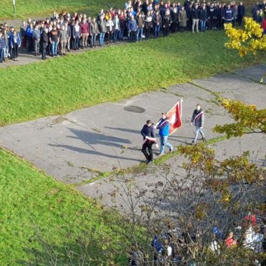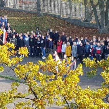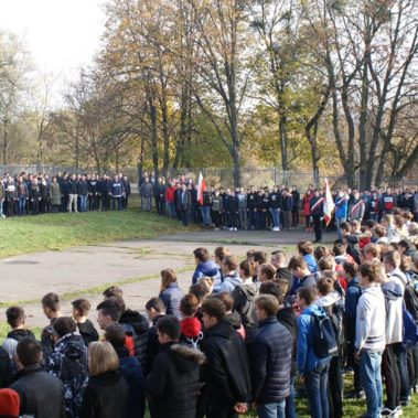 – 8 listopada o godzinie 11.11, hymn w wykonaniu całej szkolnej społeczności zgromadzonej na boisku,