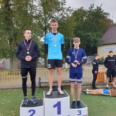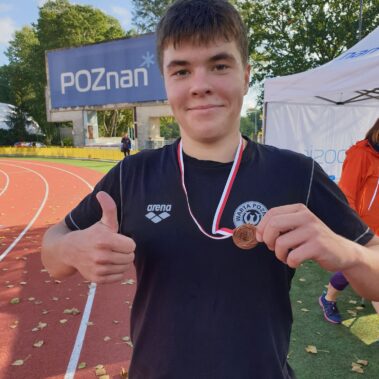 8.10.2020 odbyły się Mistrzostwa Poznania Szkół Średnich w lekkoatletyce. Reprezentanci naszej szkoły uzyskali świetne wyniki, zdobywając trzy medale. Najszybszym na dystansie 100m okazał się Krzysztof Tomczak z 4T3, który w miażdżący sposób rozprawił się z przeciwnikami. Brązowy medal na dystansie 3000m zdobył Dominik Soiński z 2T9. Wisienką na torcie było złoto w biegu sztafetowym 4x100m w składzie Krzysztof Tomczak 4T3, Oskar Pazgrat 2T2, Dominik Soiński oraz Kacper Lewandowski z 2T9. Krzysztof Stróżyk z 1T3 startował w biegu na 200m, Kacper Lewandowski z 2T9 na 400m, Karol Szułcik z 2T9 pobiegł na 800m, Oskar Pazgrat uzyskał 4 miejsce w skoku w dal. W najbliższym czasie poszczególne wyniki będą dostępne na stronie www.mos.poznan.pl
