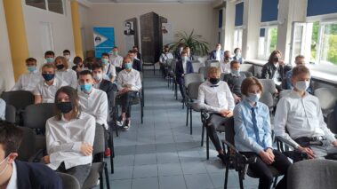 Jak co roku powitaliśmy w naszych progach grono młodych ludzi chcących rozpocząć przygodę z Energetykiem. W przepisowych maseczkach, z zachowaniem dystansu, nieśmiało spoglądali na stojących obok, starając się odgadnąć, z kim będą siedzieć w jednej ławce. Widzieliśmy ich zaciekawione oczy, czuliśmy, że ich głowy są pełne pytań – o nowych kolegów, o wychowawcę, o nauczycieli. Odpowiedzi na pierwsze pytania udzieliła Pani Dyrektor Małgorzata Grzemska, która uroczyście powitała przyszłych techników w sali konferencyjnej. Następnie wszyscy udali się do wyznaczonych sal poznać tych, z którymi spędzą tak wiele godzin przez najbliższe pięć lat.