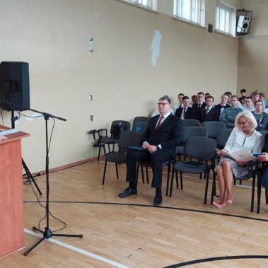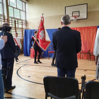 Część oficjalną rozpoczęło wprowadzenie sztandaru i przemówienie Pani Dyrektor , Małgorzaty Grzemskiej, która powitała znamienitych gości, całą społeczność szkolną i przedstawiła zgromadzonym wybitną postać Henryka Zygalskiego.