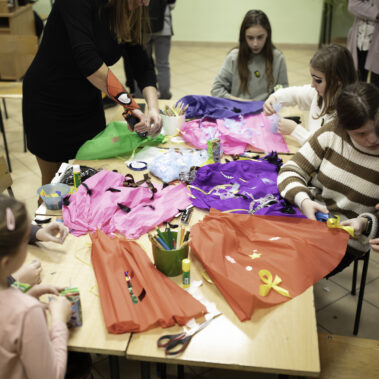 Młodsze dzieci wzięły udział z zajęciach sportowych i zręcznościowych, podczas których musiały wykazać się siłą i szybkością. Rozwiązywały zagadki i wyzwania, które wymagały bystrości i pracy zespołowej. Miały także okazję przygotować własne maski i peleryny superbohaterów oraz tarcze – na wzór tej Kapitana Ameryki.