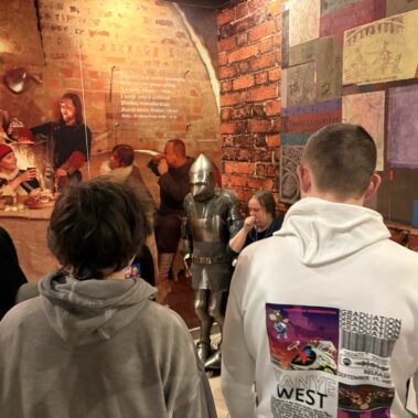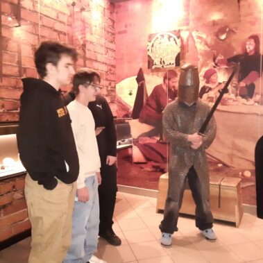 Lekcja muzealna „Czarownica, kat i strzyga – ciemna strona średniowiecza” pozwoliła uczniom oddziałów 2t5 i 2t6 odkryć mroczne oblicze średniowiecza. Podczas spotkania poznali procesy oskarżania o czary, brutalne metody egzekucji oraz legendy o strzygach. Ekspozycja obejmowała repliki narzędzi tortur i inne historyczne artefakty, które pomogły zrozumieć, jak przesądy i surowe realia tamtego okresu wpływały na życie społeczności.