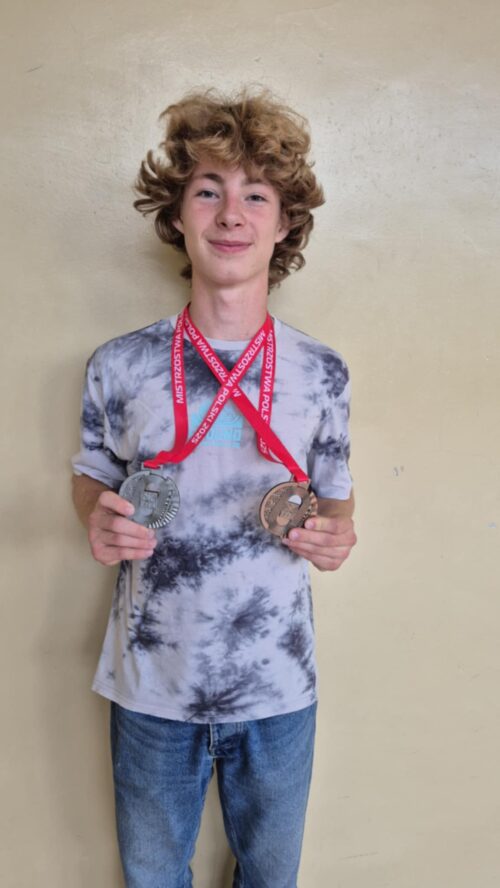 Ogromne gratulacje!!! Nasz uczeń, Adam Mączkowiak z oddziału 2T2, w miniony weekend, podczas Mistrzostw Polski w Lekkoatletyce U16 w Lublinie, zdobył dwa medale. Srebro w biegu sztafetowym mieszanym 4x100m oraz brąz na 100m. To piękny wynik i ogromny sukces. Gratulujemy i życzymy powodzenia w kolejnych startach.