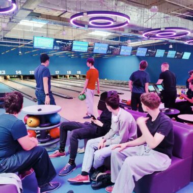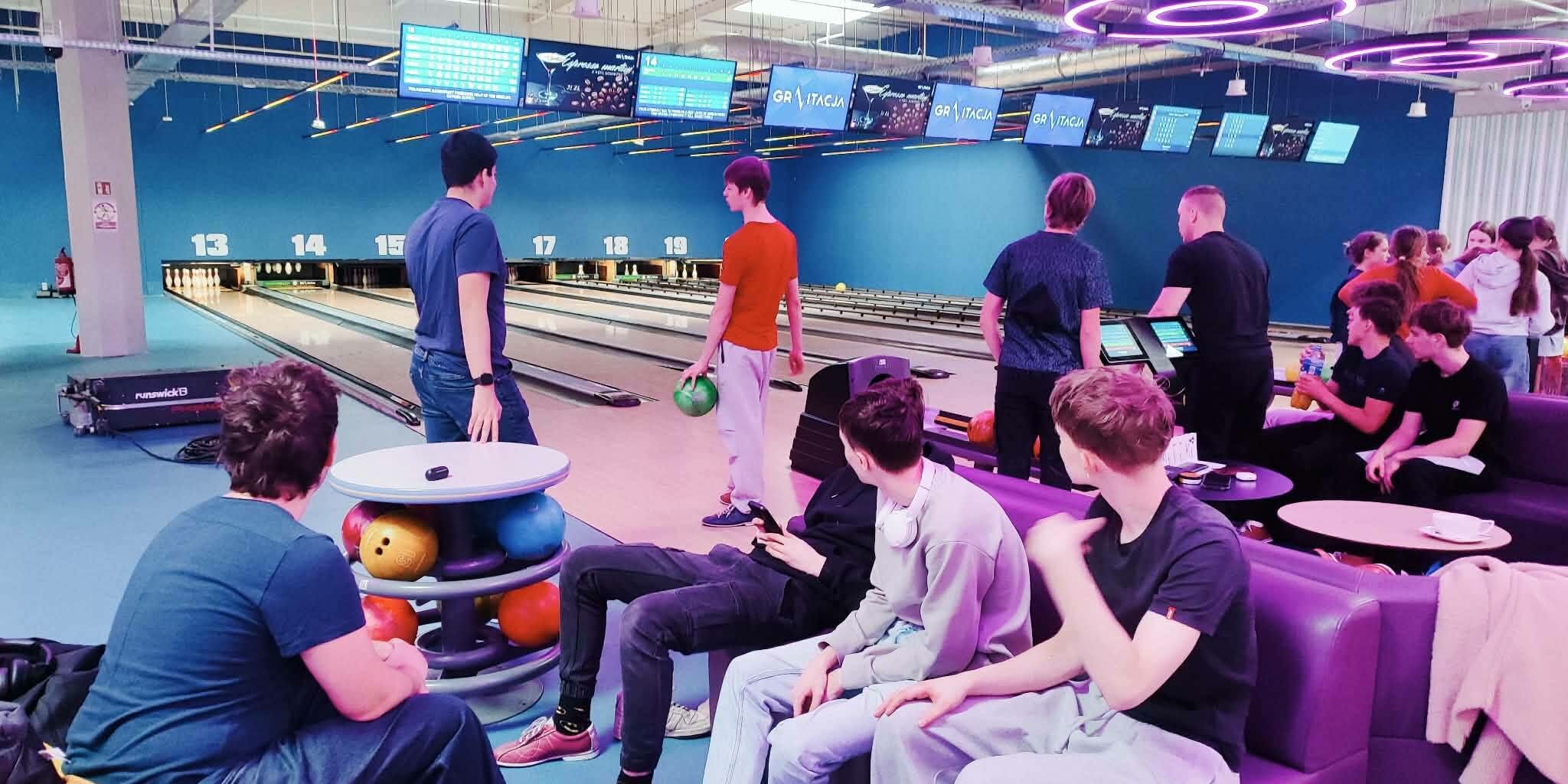 Po przybyciu na miejsce uczniowie zostali podzieleni na kilkuosobowe zespoły i rozpoczęli grę w kręgle, która wywołała wiele emocji – uczniowie dopingowali się nawzajem, cieszyli się ze zdobytych punktów oraz wspólnie przeżywali udane rzuty.