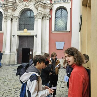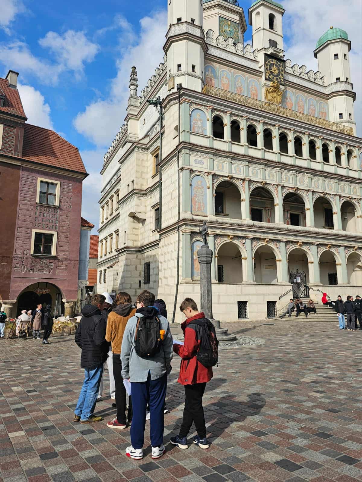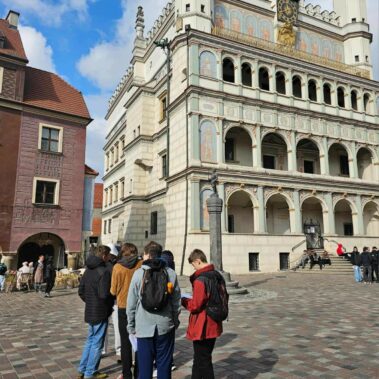 Katedra, Fara, Stary Rynek, Plac Kolegiacki, Zamek Cesarski a nawet Makieta Dawnego Poznania to tylko niektóre z punktów na trasie. Co jest napisane na posadzce Fary? Gdzie ”ukrywa się” architekt Ratusza? Czym różni się jeden z lwów znajdujących się w ogrodach Zamku? Na te i mnóstwo innych pytań nasi uczniowie znaleźli odpowiedzi podczas wykonywania zadań. Na mecie czyli przy Placu Mickiewicza na wszystkich czekały pyszne pączki. Trwa podliczanie punktów i wyłanianie najbardziej bystrej, kreatywnej i pracowitej grupy. Niebawem ukaże się także fotorelacja z wydarzenia, a póki co garść wspomnień na zdjęciach. Wszystkim uczestnikom i opiekunom dziękujemy za udział!