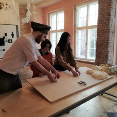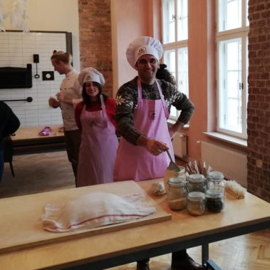 Ważnym elementem każdego spotkania projektowego jest poznanie kuchni regionalnej. Naszym gościom najbardziej przypadły do gustu pierogi i rogale świętomarcińskie.