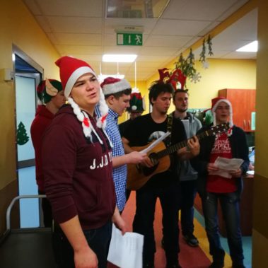 Wbrew temperaturom panującym za oknem grudzień okazał się jednym z najgorętszych miesięcy w roku. Świąteczny czas rozpalił serca uczniów i nauczycieli uruchamiając szereg działań mających na celu wsparcie potrzebujących. Jak co roku grupa elfów odwiedziła z gitarą i kolędą dzieci leczone w Klinice Pneumonologii, Alergologii i Immunologii Klinicznej w Szpitalu Klinicznym im. Karola Jonschera. Radość małych pacjentów płynącą ze wspólnego kolędowania spotęgowały dostarczone przez wysłanników Świętego Mikołaja upominki. Część z nich została zakupiona za pieniądze zebrane przez uczniów oddziałów trzecich – organizatorów charytatywnego ekokiermaszu pod hasłem „Dajemy dzieciom uśmiech, a rzeczom drugie życie”. Pięknym gestem młodzieży w stronę najuboższych mieszkańców Poznania było liczne zaangażowanie się w przygotowanie Wigilii Caritas Archidiecezji Poznańskiej. Na Międzynarodowych Targach Poznańskich przy stołach rozstawionych z pomocą naszych wolontariuszy zasiadło blisko 1400 osób. Za sprawą życzliwości i pozytywnej energii płynącej m.in. z Ogrodów ludzie samotni i ubodzy mogli skosztować wigilijnych potraw, podzielić się opłatkiem i choć przez moment poczuć ciepło rodzinnego ogniska. Z myślą o bezdomnych, w naszym Technikum, przeprowadzono również zbiórkę skarpet, czapek, rękawiczek i szalików. Tradycyjnie, dzięki darczyńcom z Fundacji AMICIS odbyła się też akcja „Aniołek pod choinkę”, w ramach której nasi uczniowie będący w trudnej sytuacji życiowej otrzymali pełne smakołyków paczki żywnościowe. Wspaniałym prezentem podzielili się z obecnymi i emerytowanymi pracownikami Energetyka uzdolnieni artystycznie pierwszoklasiści, przygotowując niezwykle ciepłe i zabawne przedstawienie wigilijne.