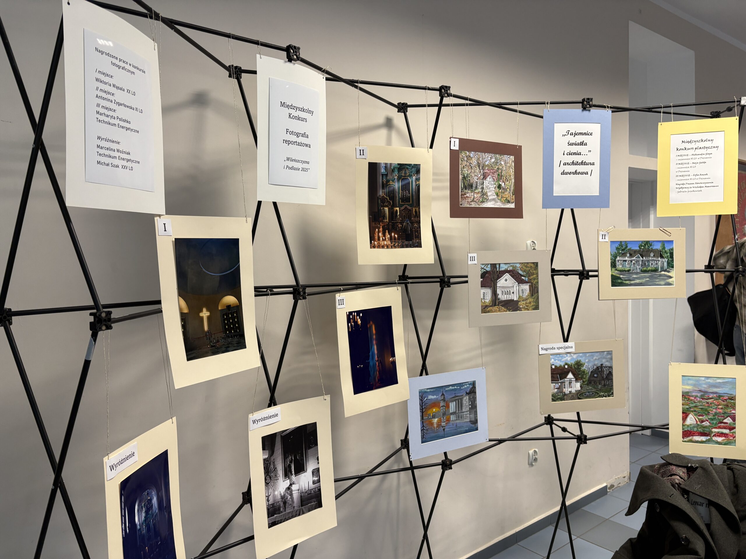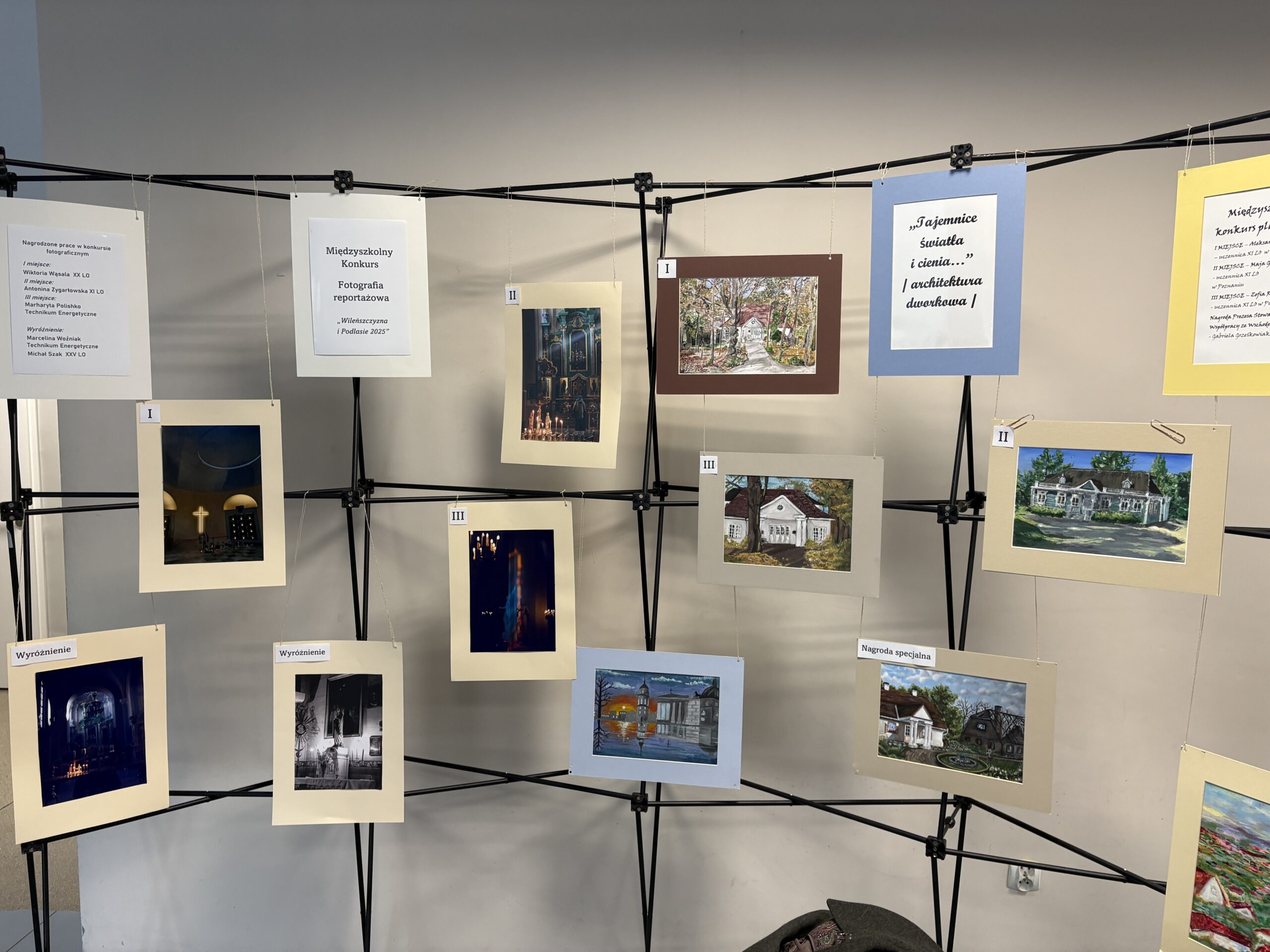 Po zakończeniu tej części wręczono nagrody laureatom konkursu plastycznego „Tajemnice światła i cienia… Architektura dworkowa” oraz konkursu fotograficznego „Wileńszczyzna i Podlasie 2025” w kategorii fotografii reportażowej. Wśród nagrodzonych znaleźli się również uczniowie naszej szkoły, m.in. Marharyta Polishko z oddziału 4t5, która zajęła III miejsce, oraz Marcelina Woźniak z oddziału 3t5, która otrzymała wyróżnienie.