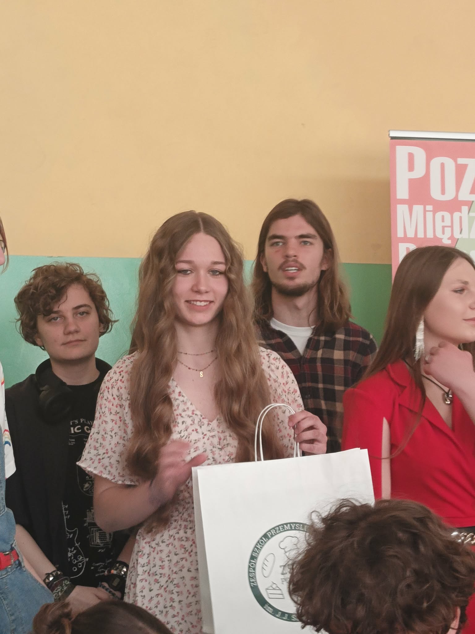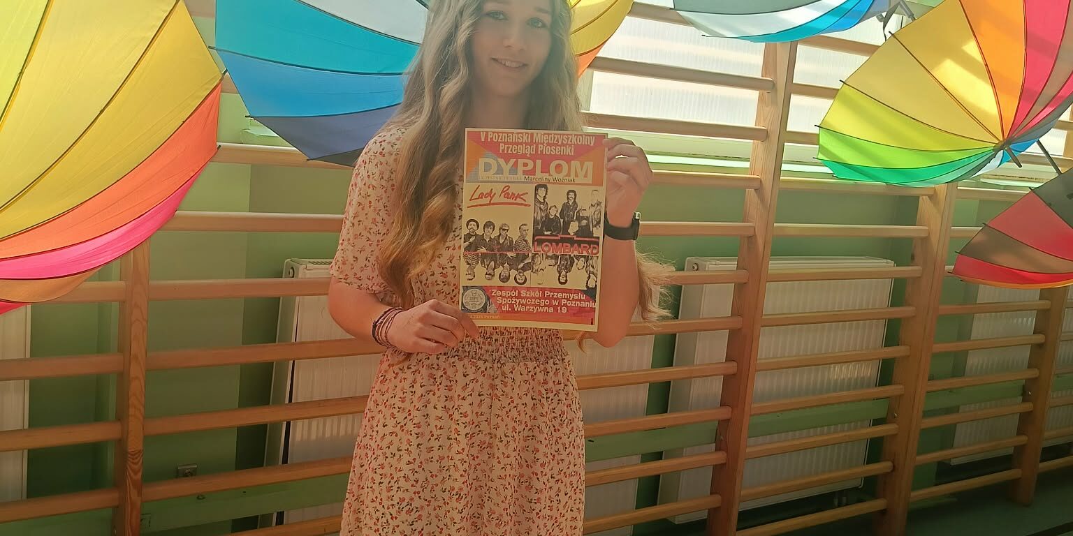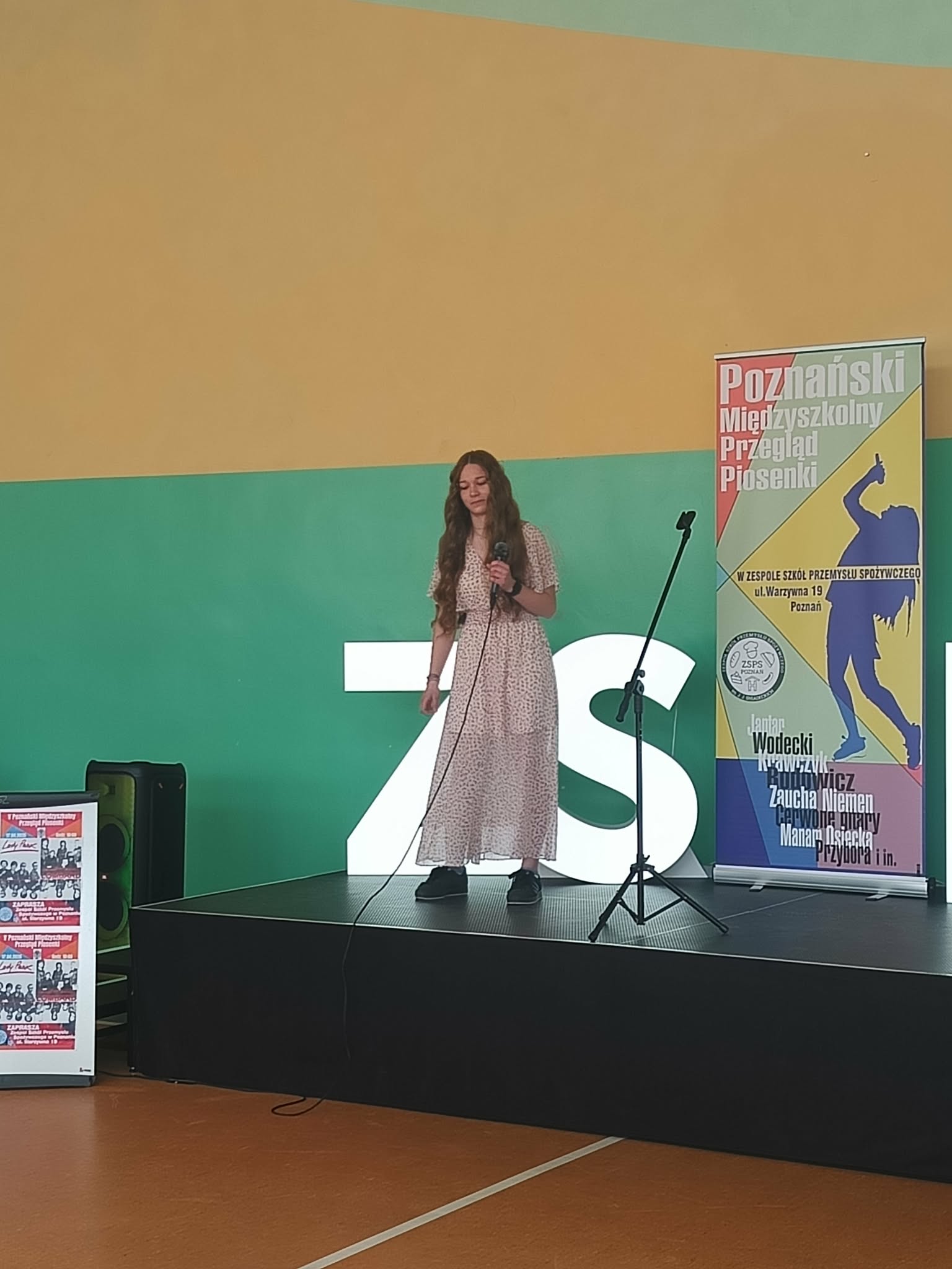 17 kwietnia 2026 Marcelina Woźniak, uczennica klasy 3T5, reprezentowała naszą szkołę w V Międzyszkolnym Przeglądzie Piosenki organizowanym przez Zespół Szkół Przemysłu Spożywczego przy ul. Warzywnej w Poznaniu. Marcelina zaśpiewała utwór „Kryzysowa narzeczona” z repertuaru Lady Pank.